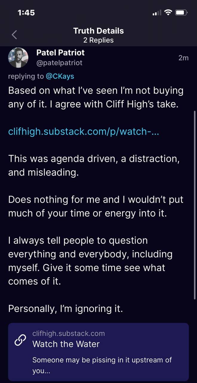 Two guys who I respect a lot, Patel Patriot and Clif High, are both skeptical.