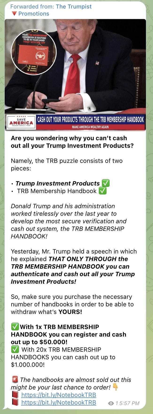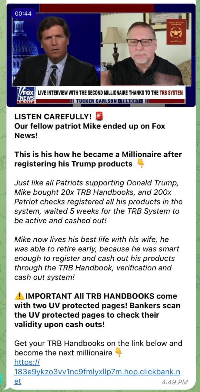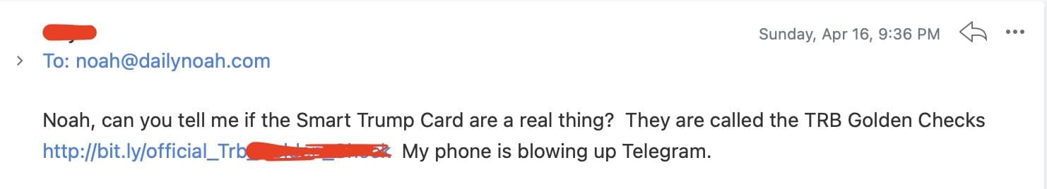 No, this is NOT a Scam….this is not about a new “Trump Card” or “Trump Bucks” or “TRB Vouchers” or any of the other nonsense you see so often on places like Telegram.