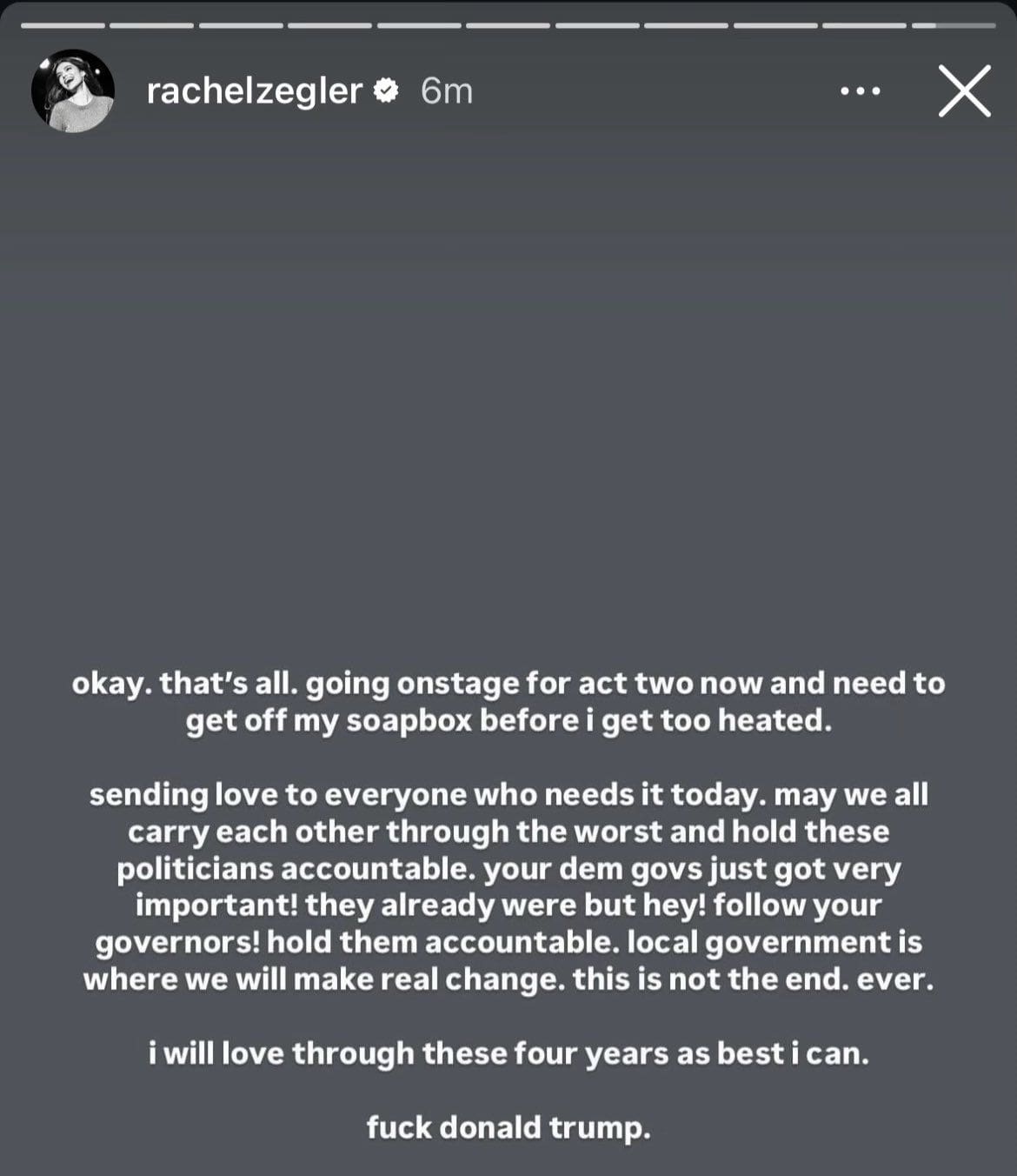 Here’s a few images of her social media (Instagram stories) when President Trump won in November: