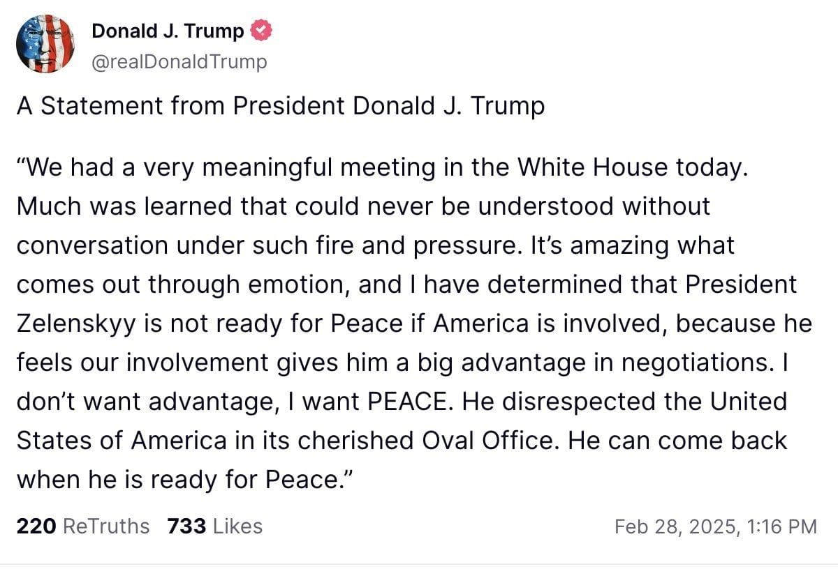 🚨 BREAKING: Trump announces the deal with Ukraine is OFF