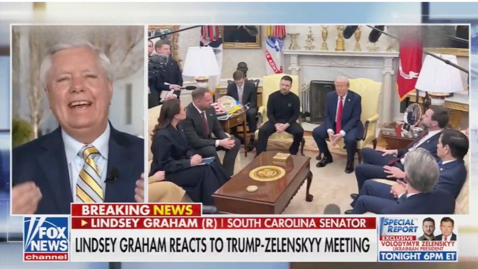 He’s been the biggest Zelensky/Ukraine supporter all along, but even Graham is out after seeing the debacle this morning, calling it an “absolute, utter disaster.”