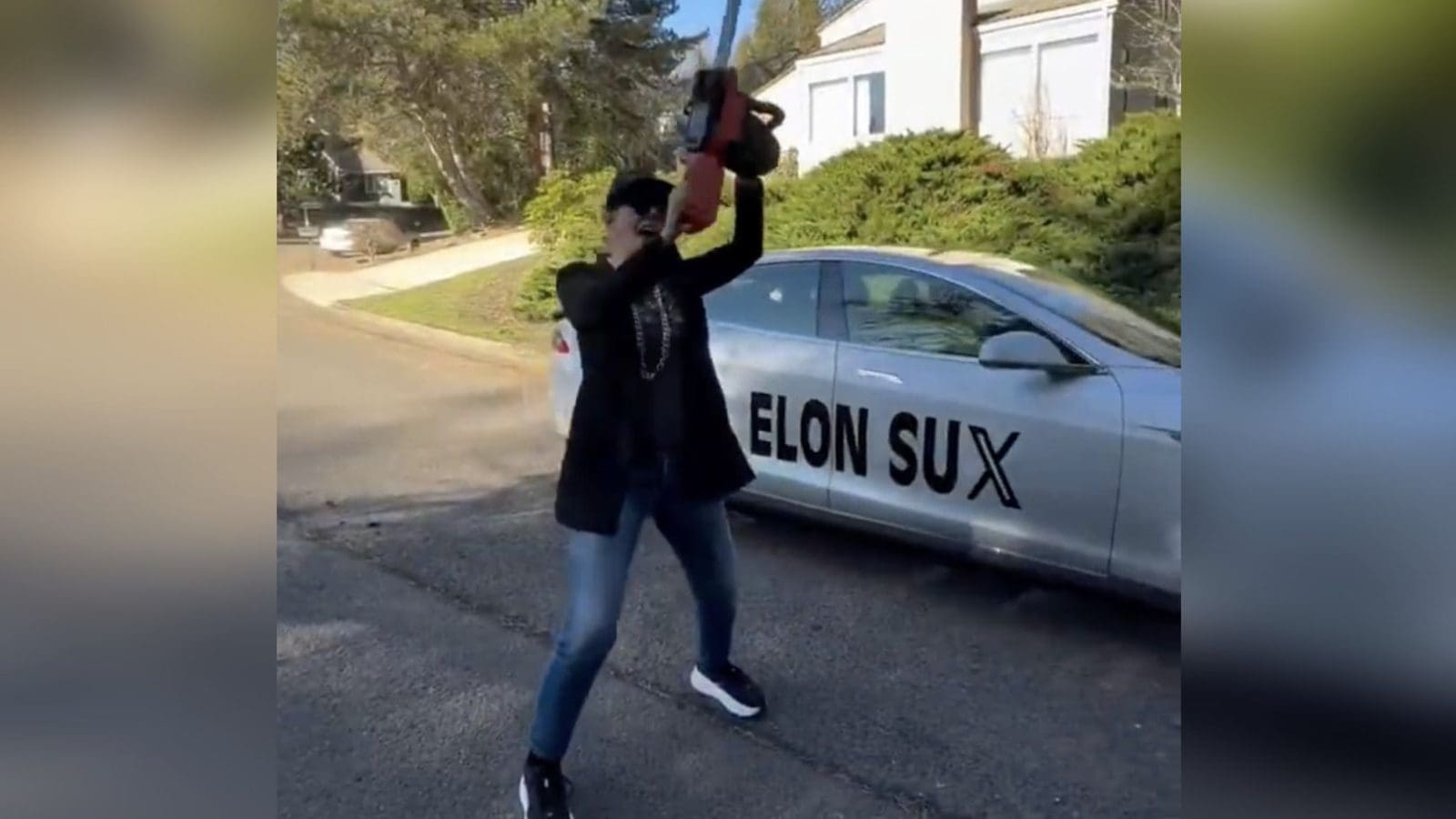 I have to put “celebrity” in quotes because I have no idea who this person is, but according to Twitter Actress Cassandra Peterson (Elvira) painted “Elon Sux” on the side of her Tesla and then donated it to charity.