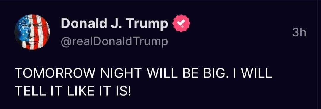 Pop your popcorn, gather the family (maybe not the little ones...) and get ready for something "big", according to President Trump.