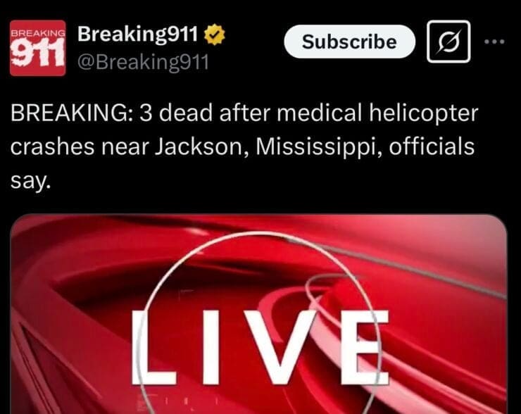“A Madison County spokesperson confirmed that first responders were called to a helicopter crash around 12:30 p.m. near Mississippi 43 and the Natchez Trace Parkway,” the outlet wrote.