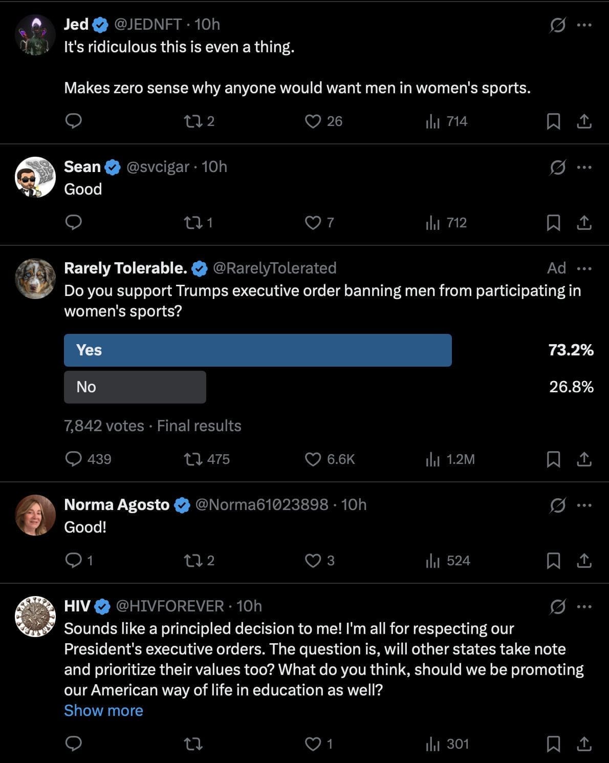 ADVERTISEMENT“Thinking about transgender female athletes — meaning athletes who were male at birth but who currently identify as female — do you think they should or should not be allowed to compete in women’s sports?” the survey asked.