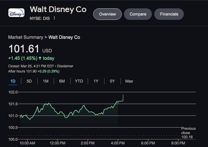 Disney stock is going up??
