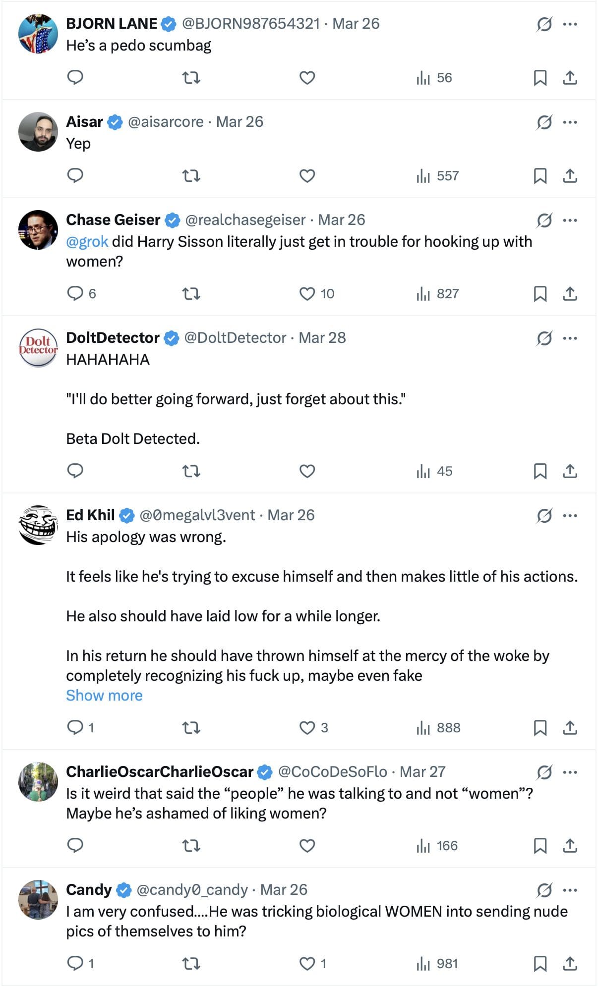 Well folks, I didn't expect to be writing this but here we are: DNC "Influencer" Harry Sisson has found himself embroiled in a new sex scandal of sorts....