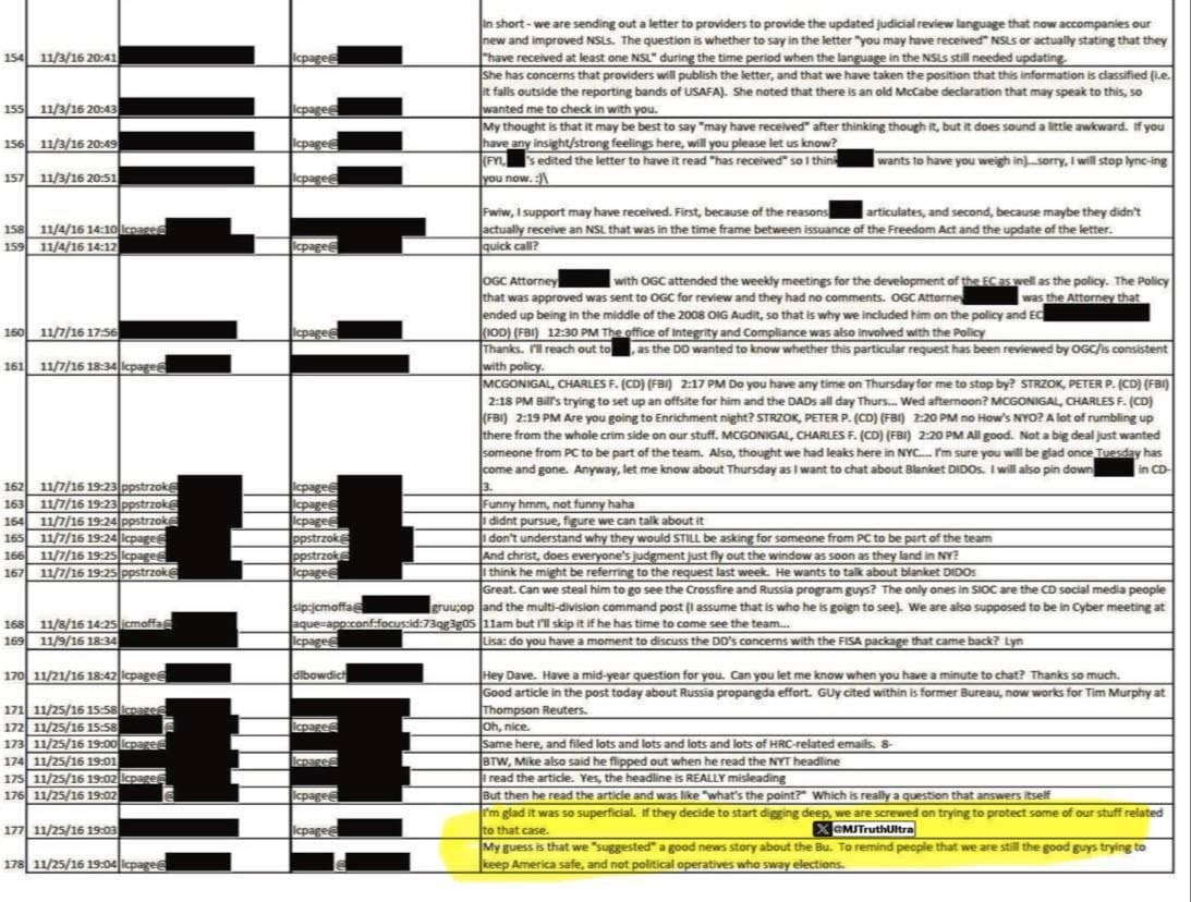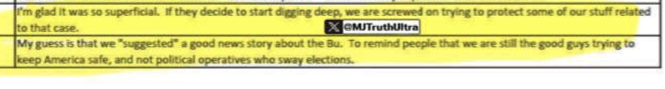 • Page also emphasized the need to maintain the FBI’s “good guys” image, “To remind people that we are STILL the good guys trying to keep America safe, and not political operatives who sway elections.” 👀