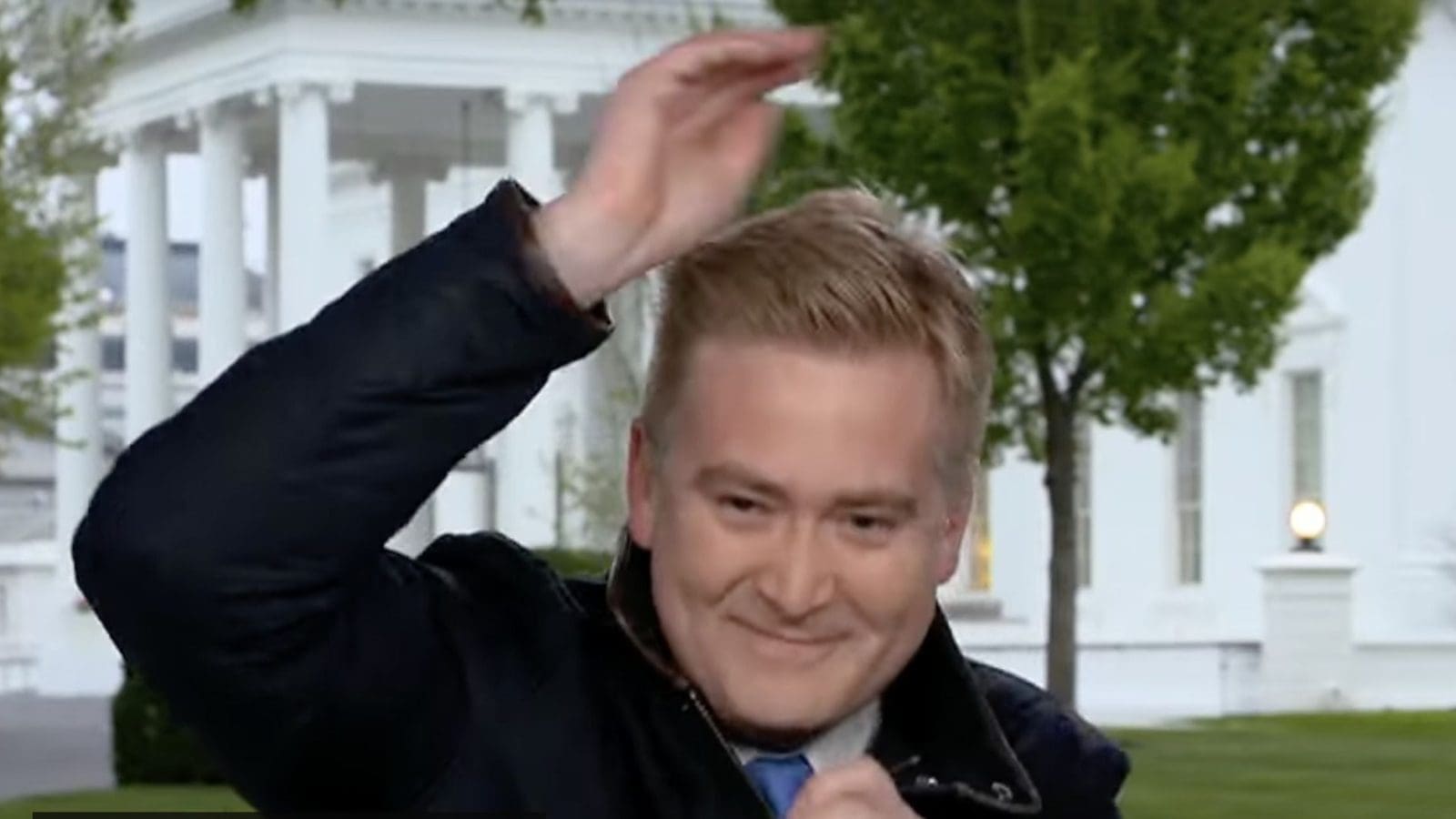 A bird just landed on Peter Doocy's head on live television outside the White House:
