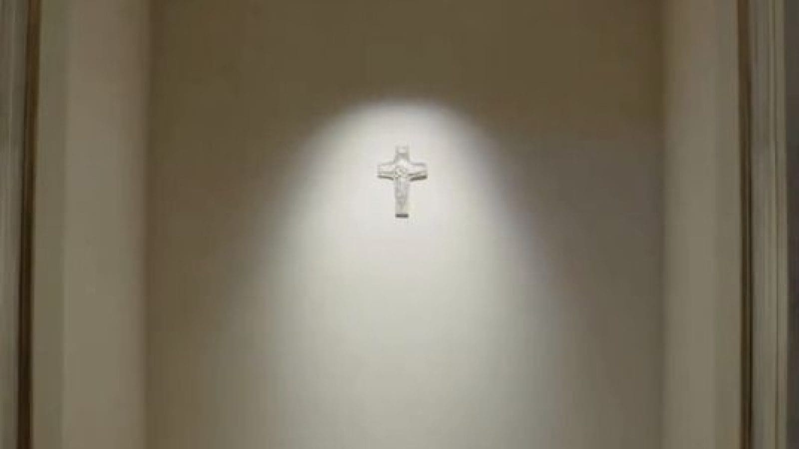 First images of Pope Francis' tomb at Saint Mary Major: the slab marked 'FRANCISCVS' is lit by a spotlight, and above it hangs a crucifix — an enlarged replica of the late Pope's pectoral cross. pic.twitter.com/CI1tfjS2RM