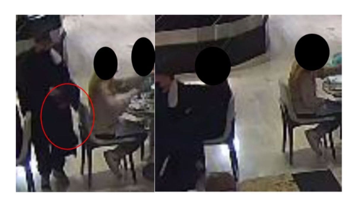 Prosecutors say that Leiva used his leg to push Noemās purse ā located on the ground ā closer to him before bending down with his jacket in one hand, to take the purse in his other hand.