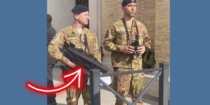 One short little video jumped out at me over the weekend at Pope Francis’ funeral, and it was a short clip of some Italian guards holding a massive weapon. What exactly is that thing?