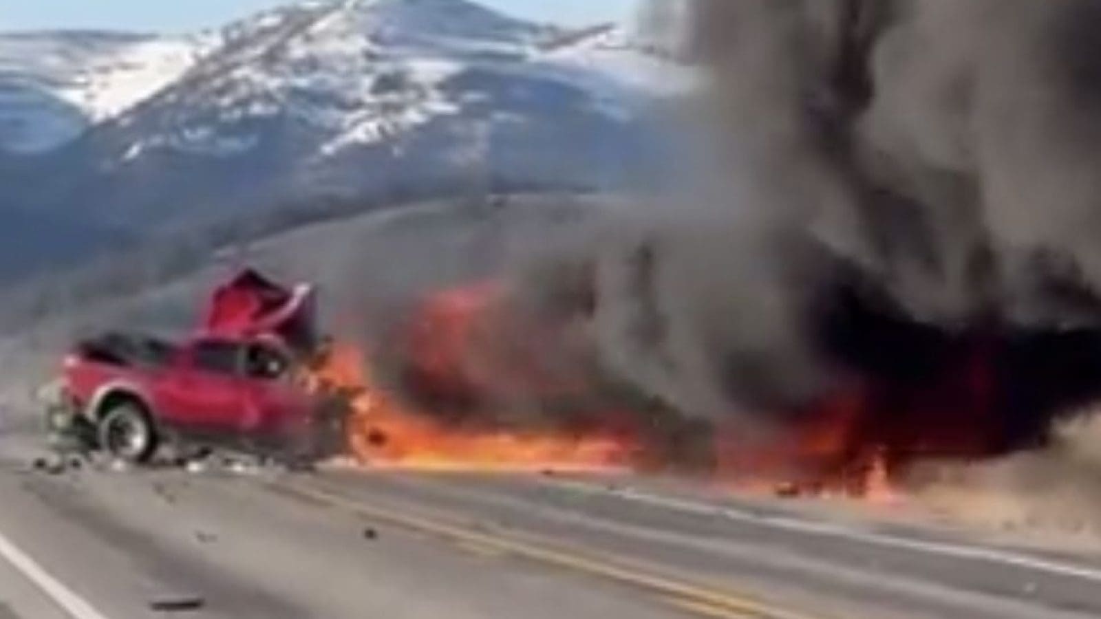 Police have not said what exactly caused the wreck, but the Dodge Ram truck was traveling west while the Mercedes van was traveling east toward Yellowstone when it happened. Video from the scene showed clear weather conditions at the time.