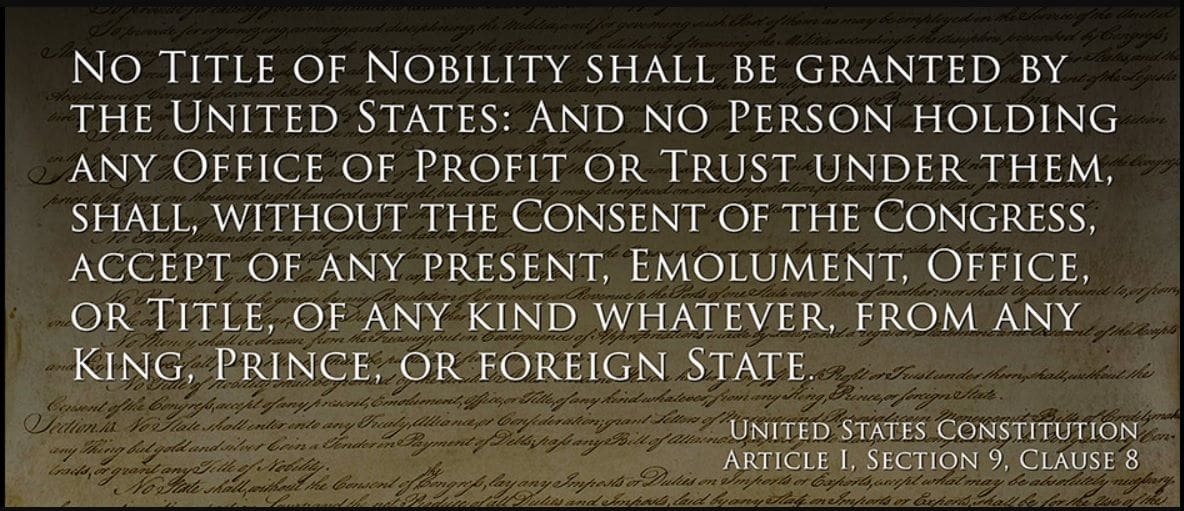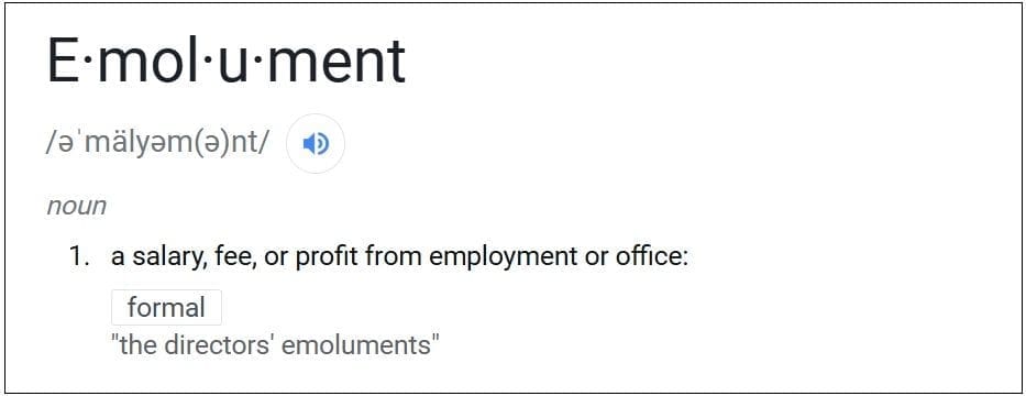 But the TURBULENCE related to this gift is relative to the fact that the Constitution forbids an “Emolument” (in what is unsurprisingly called the “Emolument Clause“).