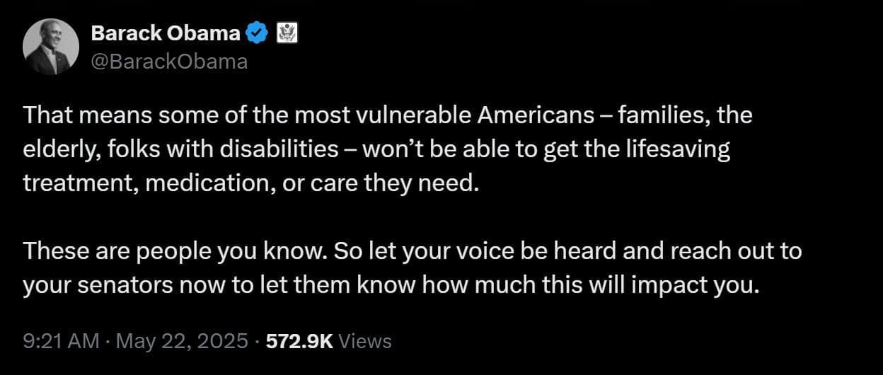 Let me be clear (if you heard that internally in Obama’s voice, you’re my tribe) – absolutely no “vulnerable Americans” are getting anything taken from them because of President Trump’s ‘Big Beautiful Bill’.