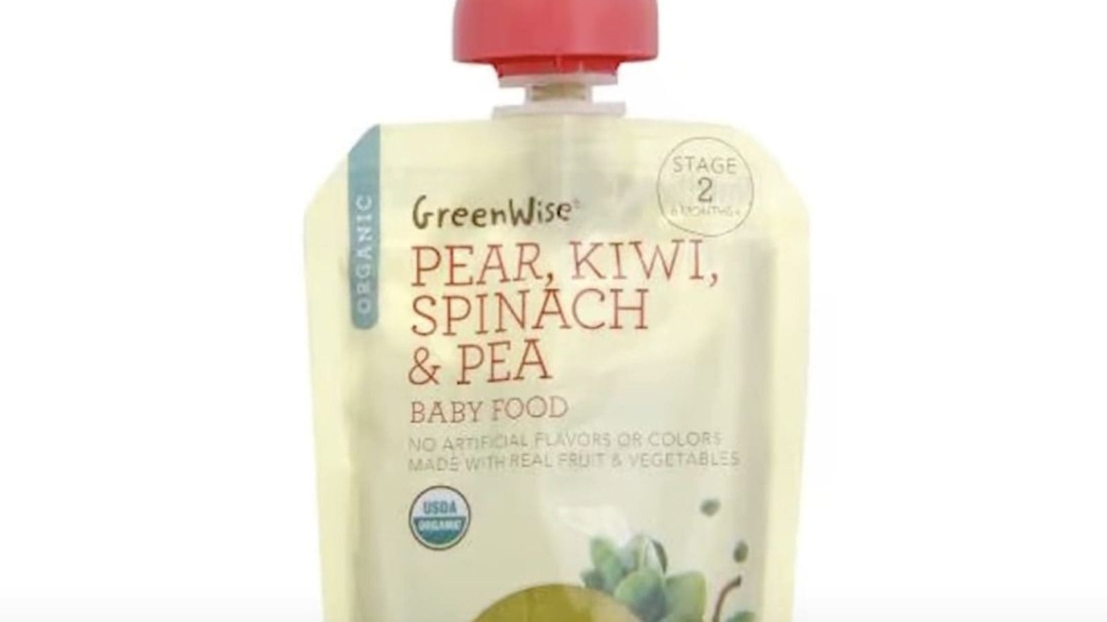 Publix recalled 4-ounce Greenwise Pear, Kiwi, Spinach & Pea Baby Food pouches sold at more than 1,400 stores.