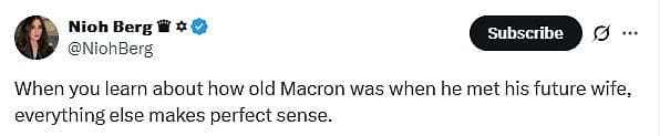 ‘When you learn about how old Macron was when he met his future wife, everything else makes perfect sense,’ one user posted to X, formerly known as Twitter.