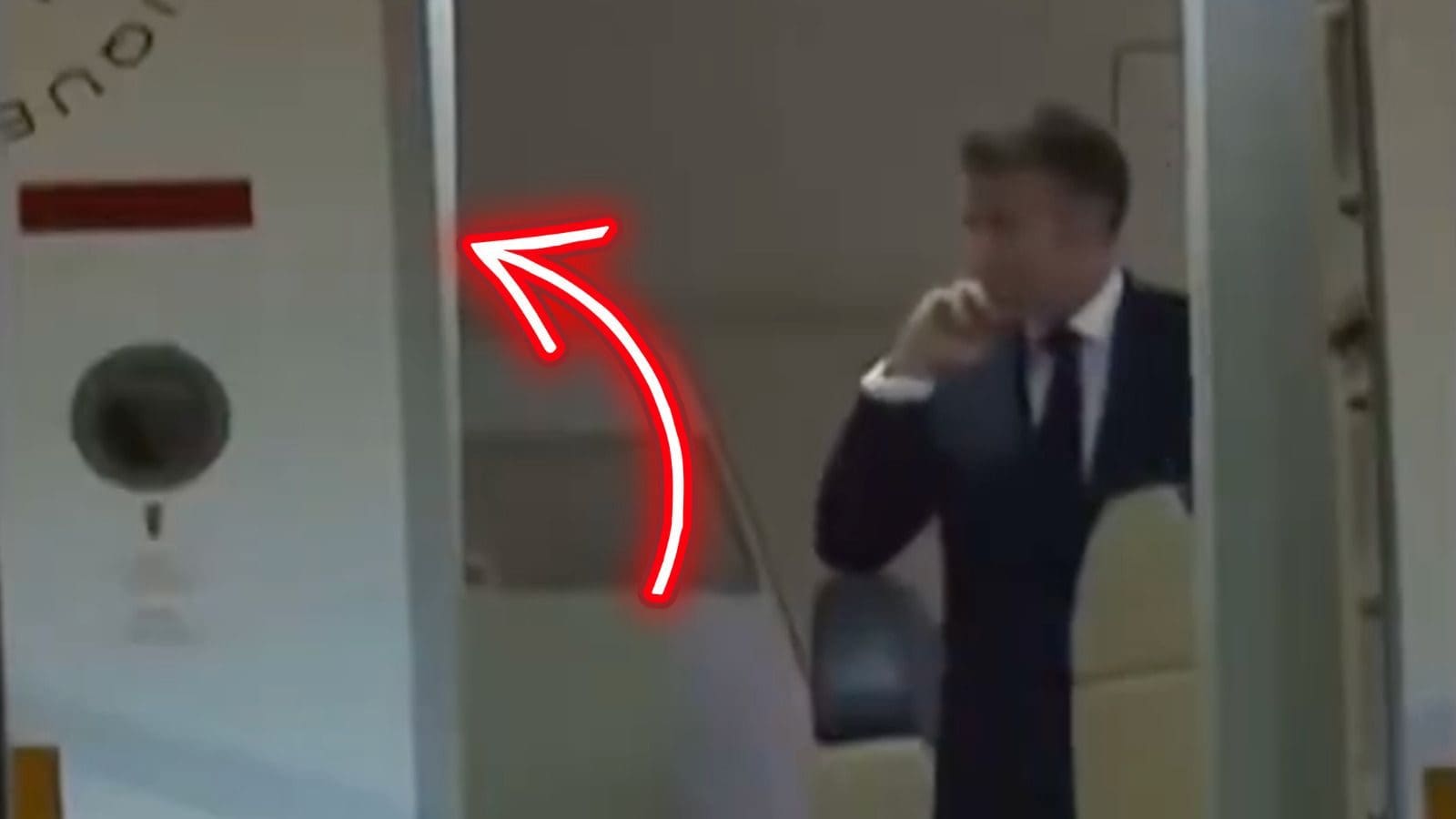 Macron was seen getting shoved in the face before getting off the plane as if nothing happened.