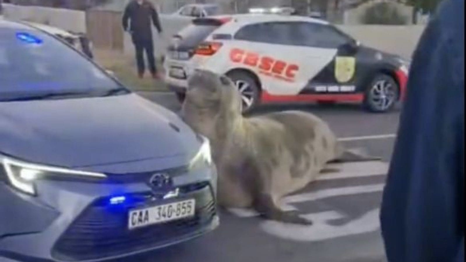 A video shows a large elephant seal taking over the streets of the coastal town of Gordon’s Bay, near South Africa.