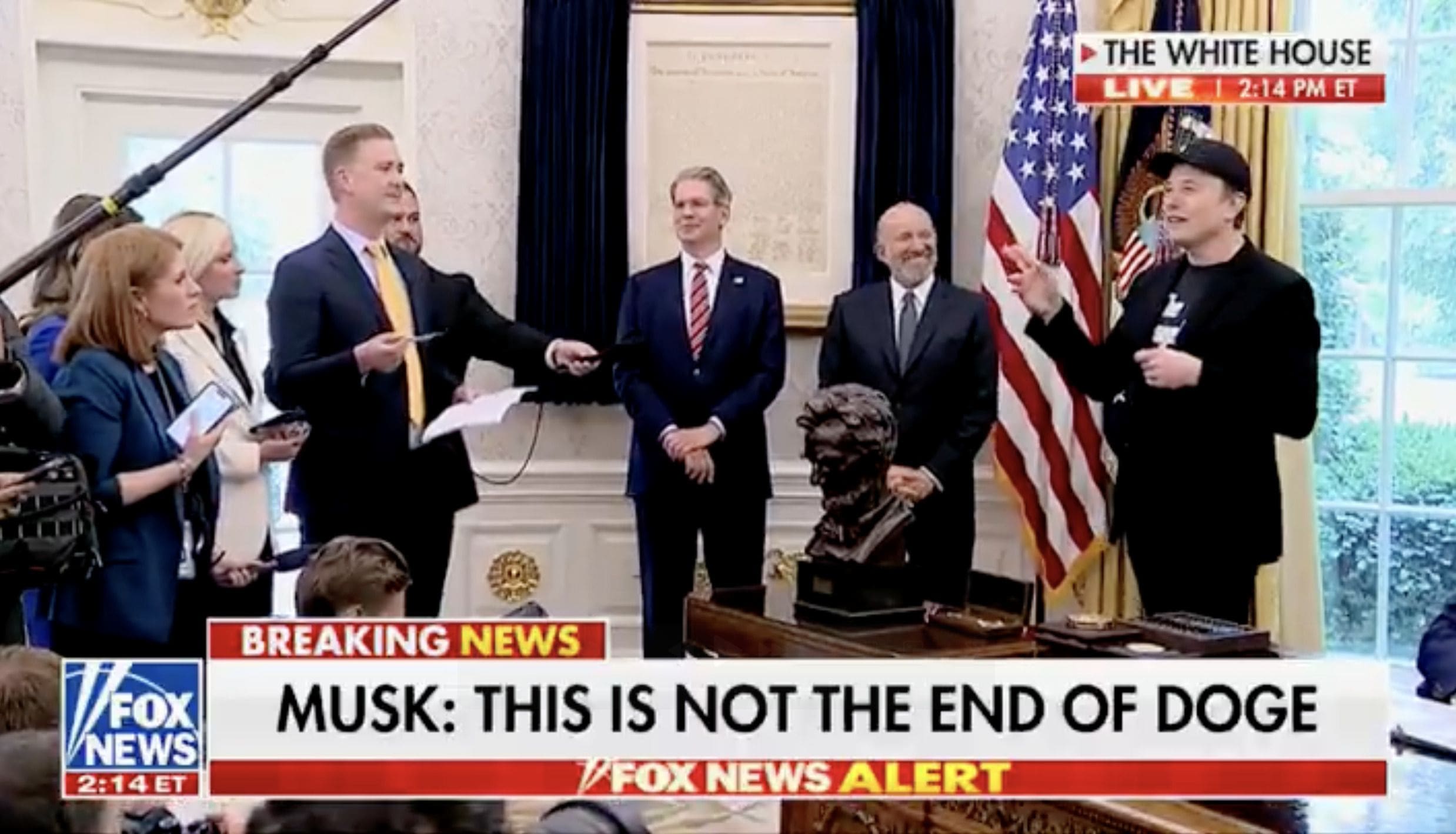 Another angle here, all from Elon’s Oval Office press conference with President Trump: