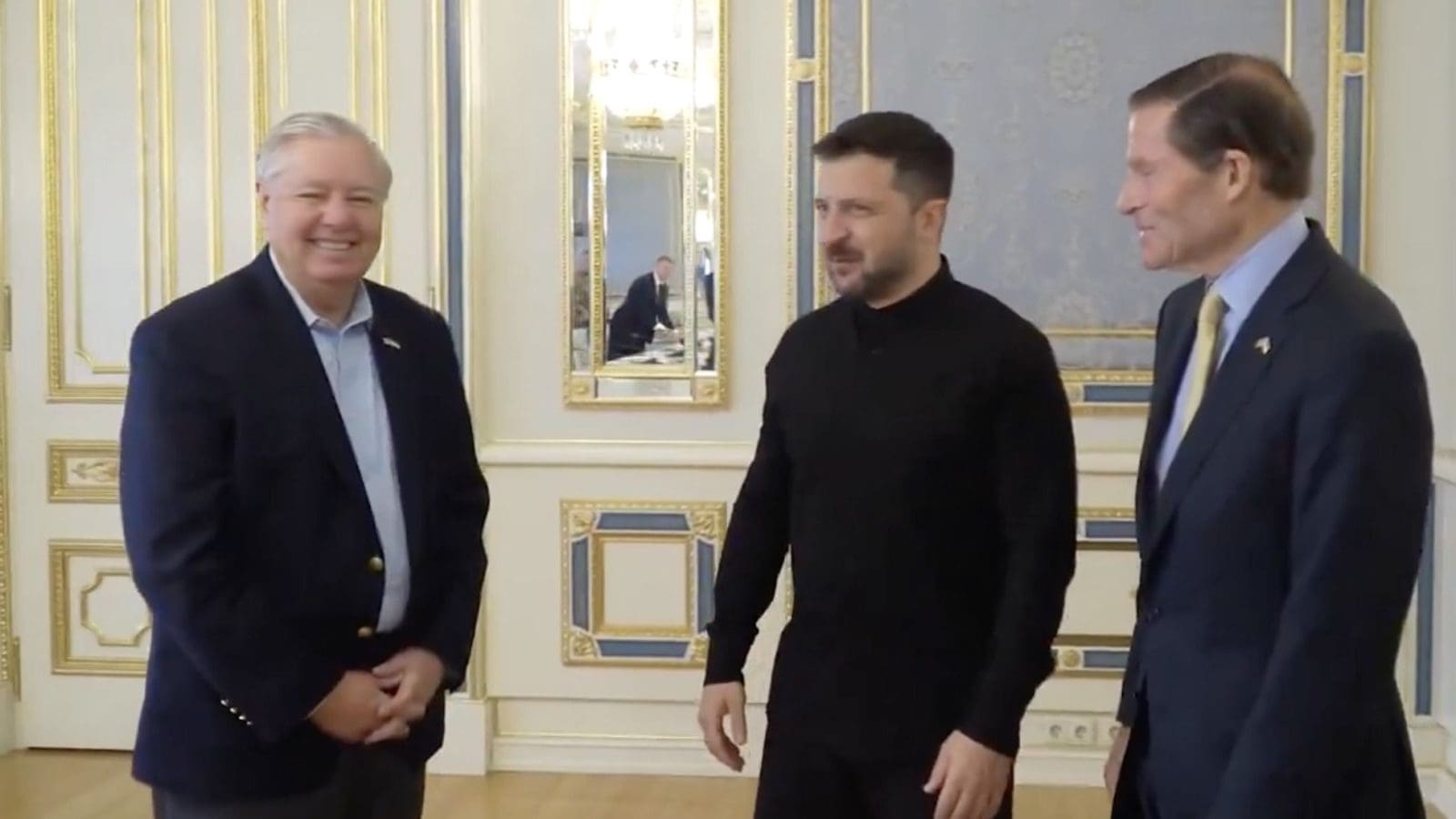 Lindsey Graham and some guy that looks like a walking corpse (I know, I know, it’s Blumenthal) just travelled to Ukraine to meet with Zelensky!
