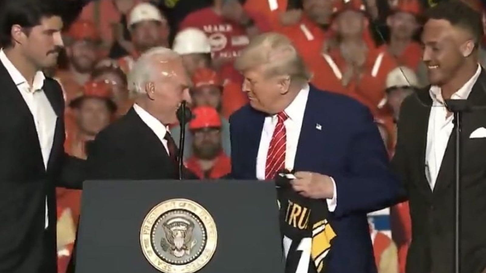 Bleier called Trump a “Hall of Fame President” when he presented him with a custom No. 47 jersey during Friday’s rally and declared him an “honorary Steeler.”