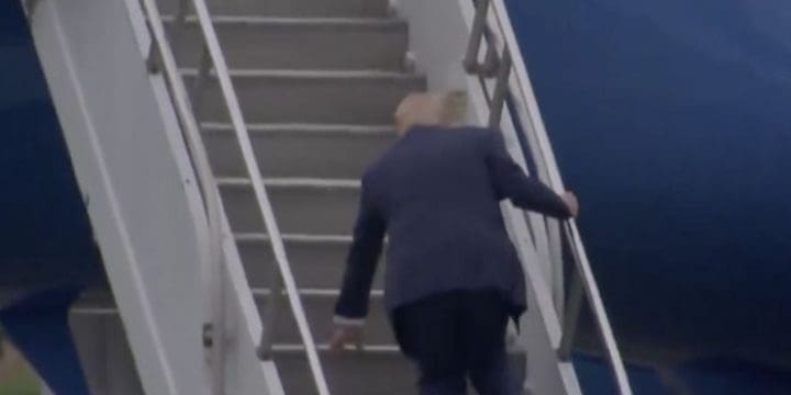 President Trump Slips While Walking Up Stairs Of Air Force One
