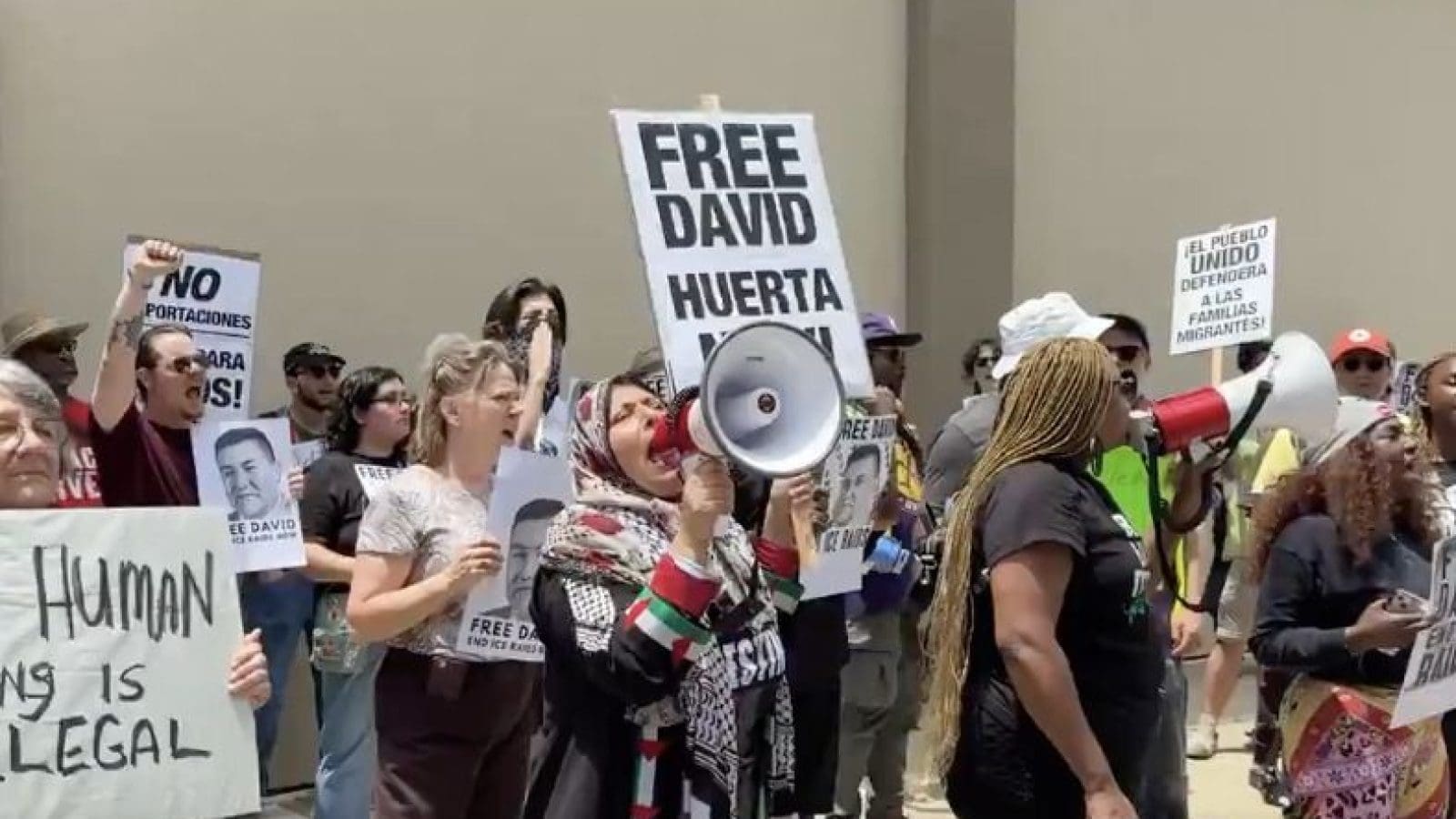 The group called for an end to ICE raids and the release of California union leader David Huerta. Huerta, who was charged with conspiring to impede an officer during an anti-ICE protest in Los Angeles on Friday, was later released on bond.