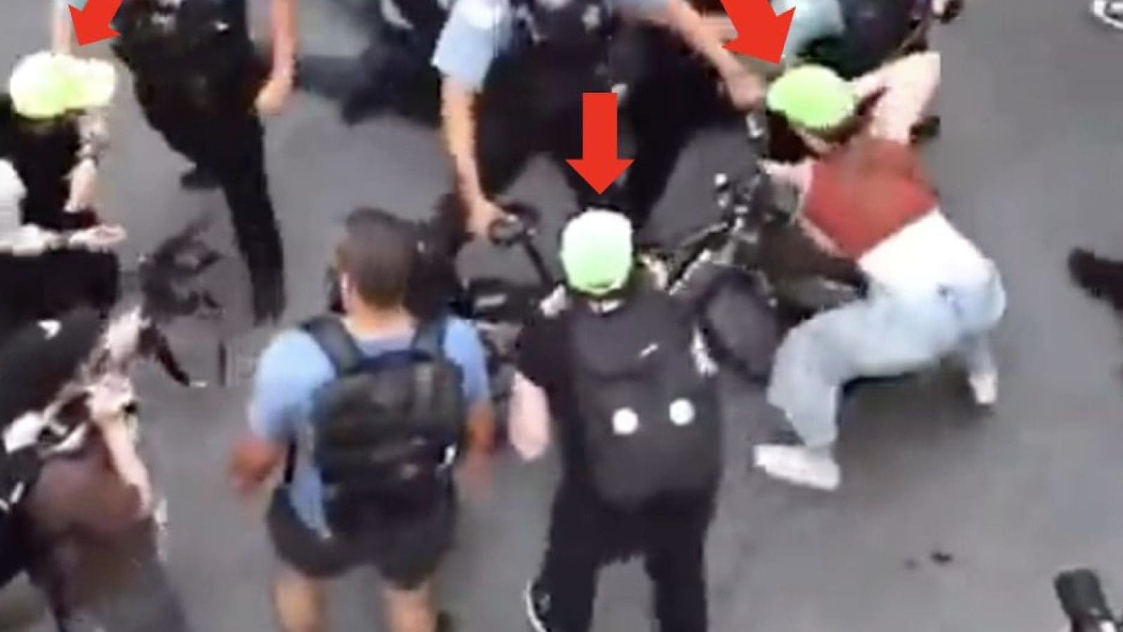 A lot of people tried to interfere with the arrest. Pay attention to the woman with the bright green hat and red top.