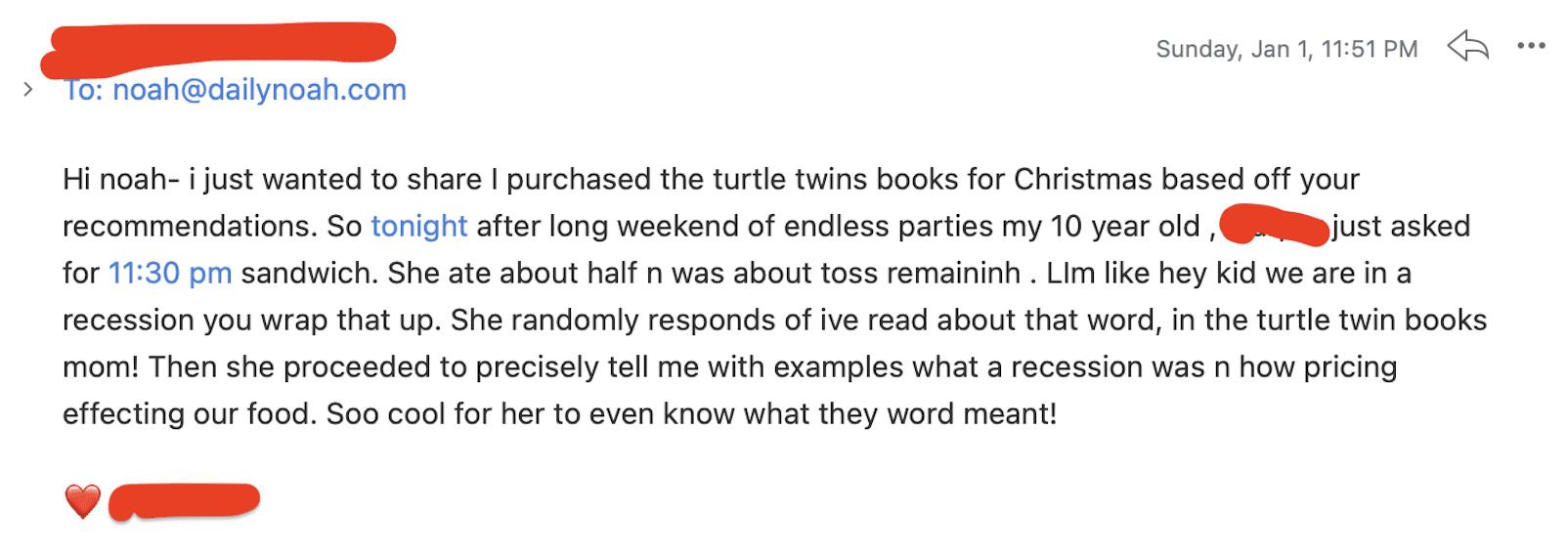 Names and email addresses redacted for privacy purposes…but you have to see this message!