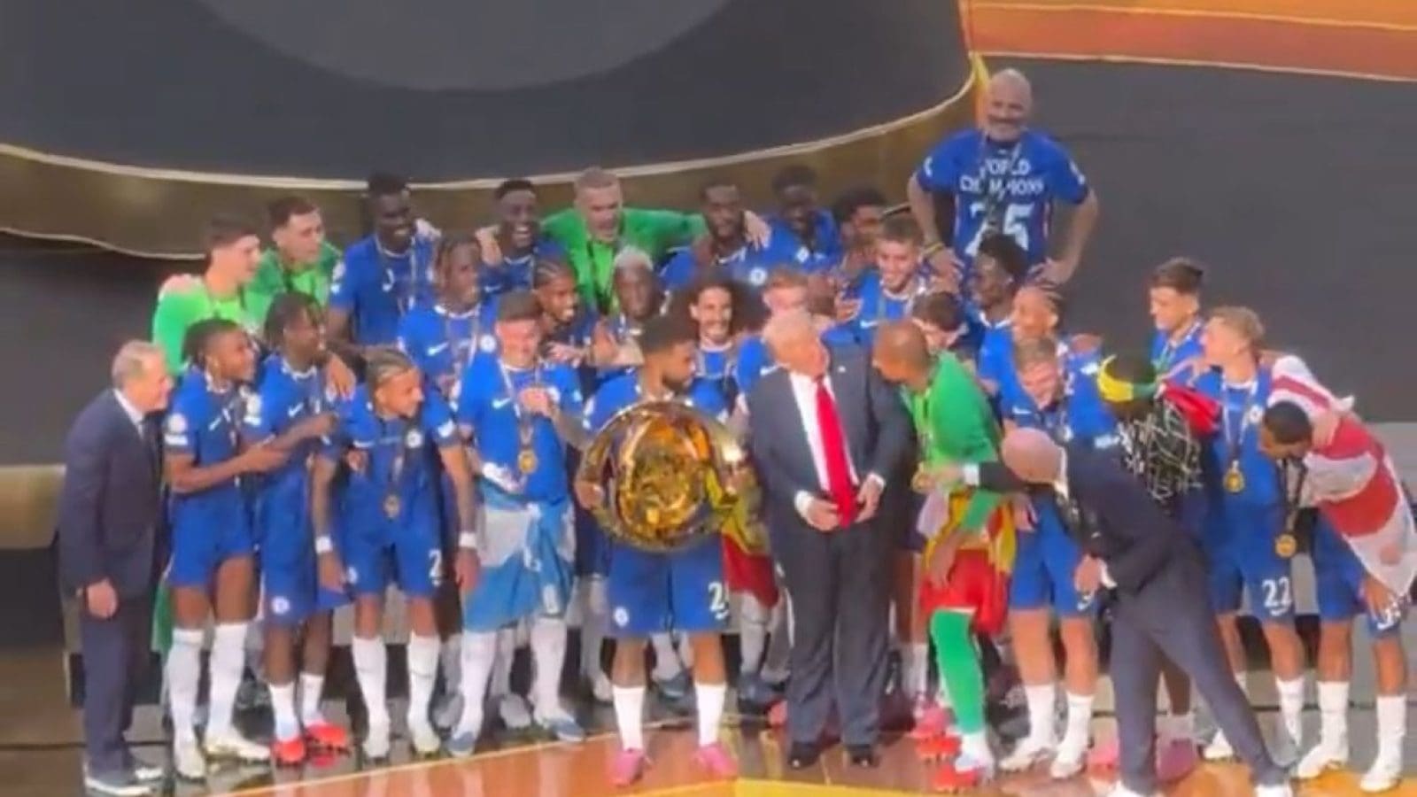 President Trump joins @ChelseaFC as they lift the FIFA Club World Cup trophy! 🏆🇺🇸 pic.twitter.com/qVUDGC3EBT