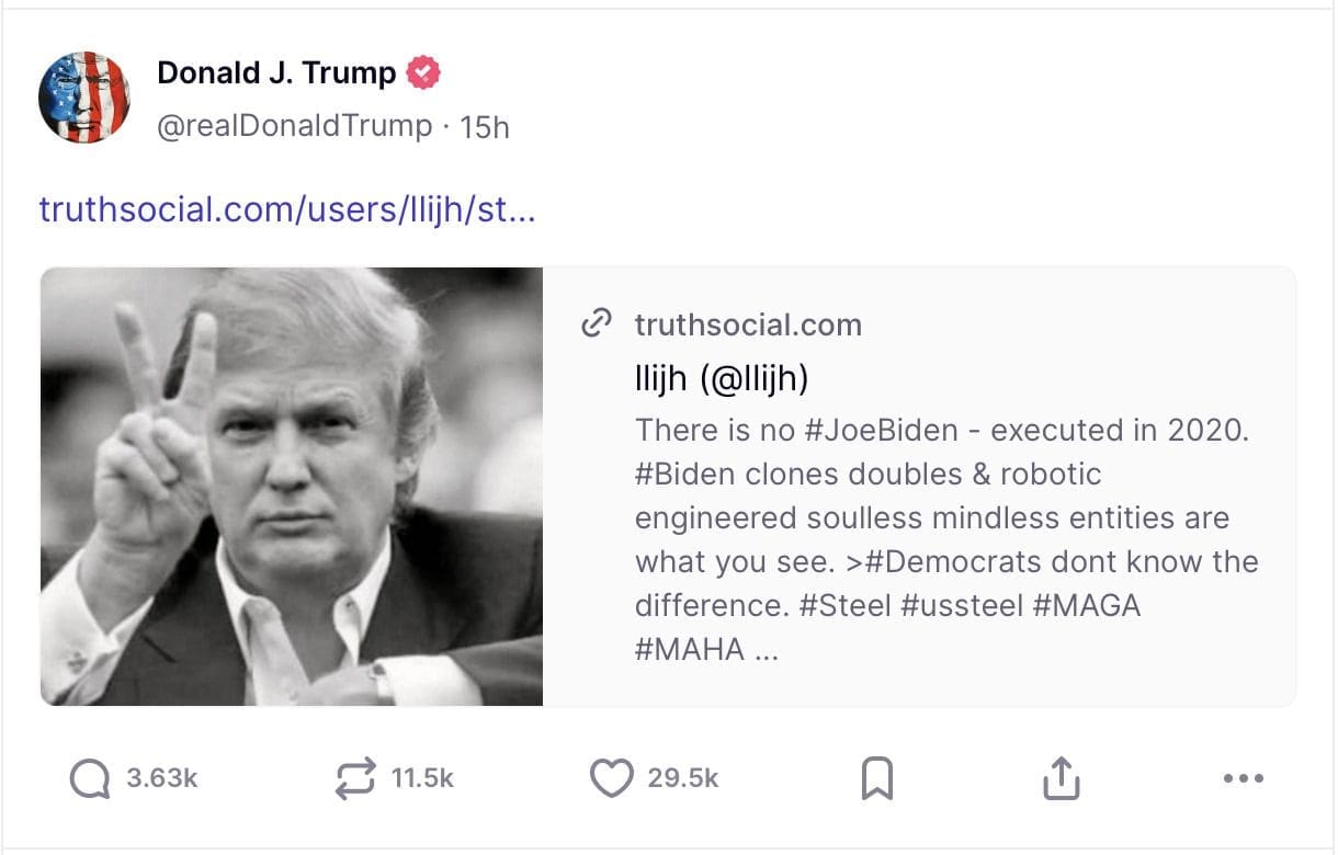 Today, President Trump just posted to his TruthSocial that Joe Biden has been dead since 2020.