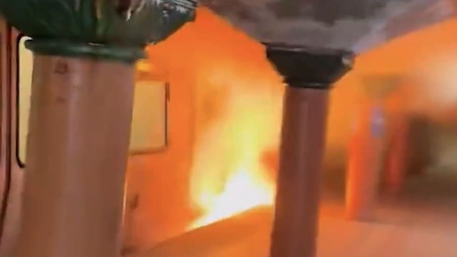 Video from inside the train showed passengers yelling for the doors to open as smoke filled the car. When the doors opened, flames could be seen coming from under the train and shooting up along the side of the platform.