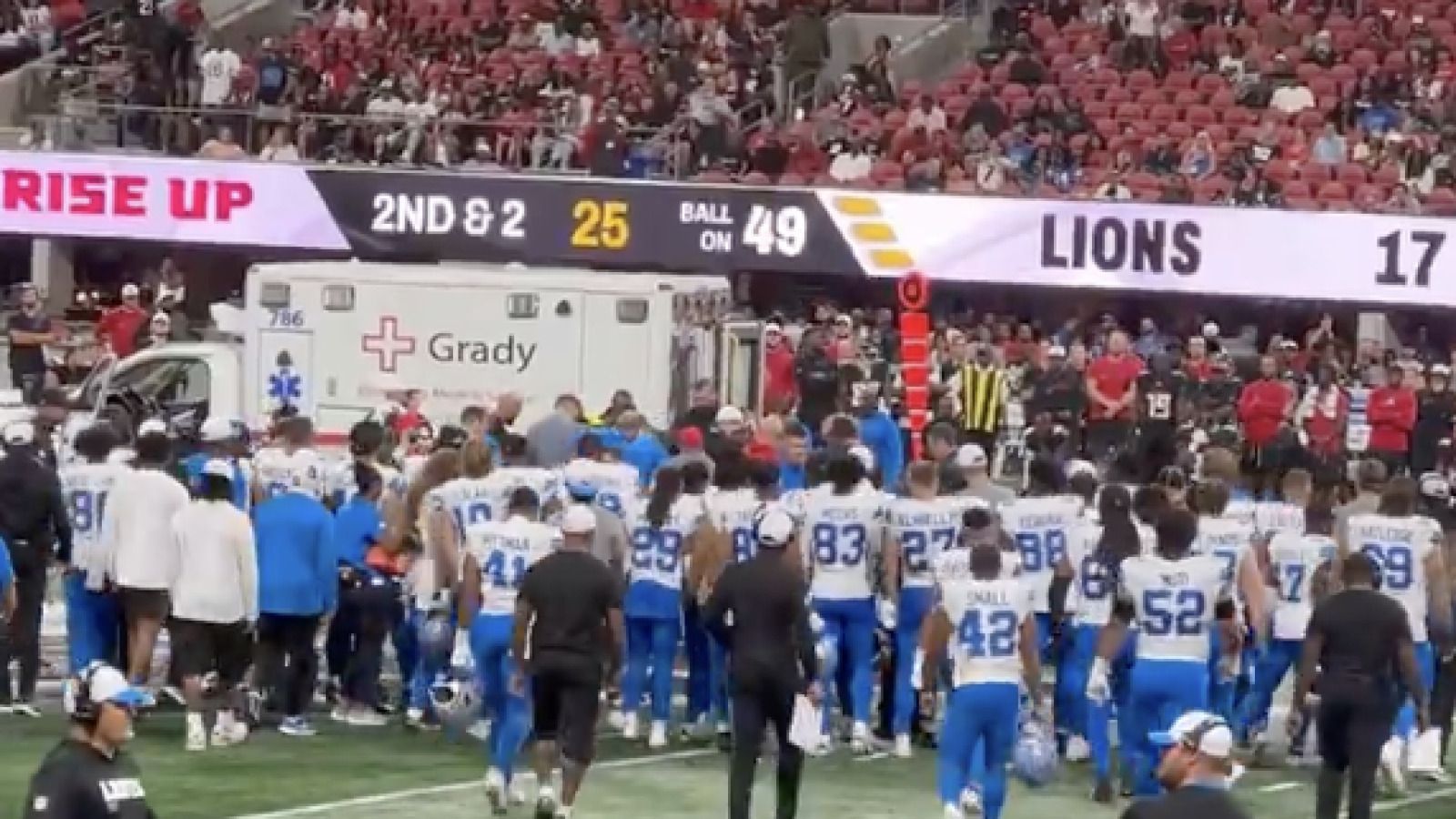 After Lions safety Morice Norris was taken off the field in an ambulance, both the Falcons and Lions players gathered in a circle on the field and let the clock run out.