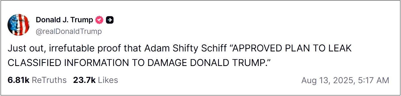 Which formed the basis of the accusation President Trump leveled at Schiff in his Truth Social post.