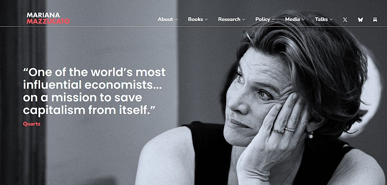 Just to give a glimpse into the double-speak still being used by the globalists, check out the professional website landing page of Mariana Mazzucato, the Professor spotlighted in the first viral clip I showed: