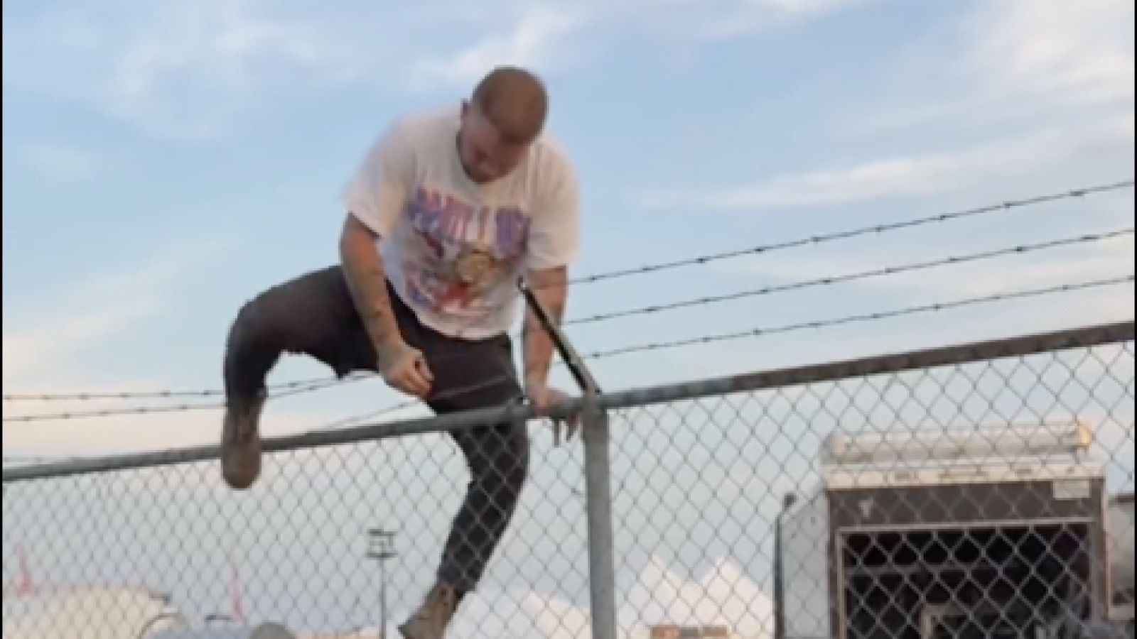 In several videos posted on social media, Bryan, 29, scaled a barbed wire fence and tried to rush towards Adcock, 26, but he was held back by security.