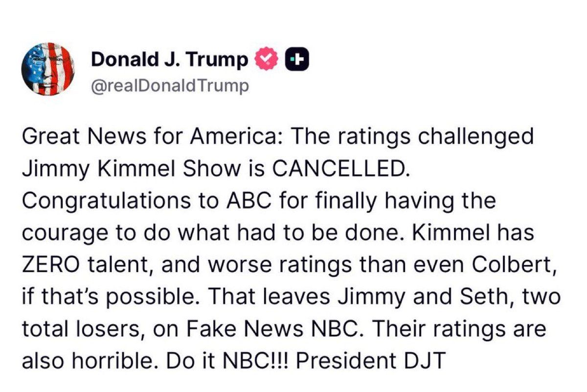 President Trump posted the great news and then called for Jimmy Fallon and Seth Meyers to be cancelled next: