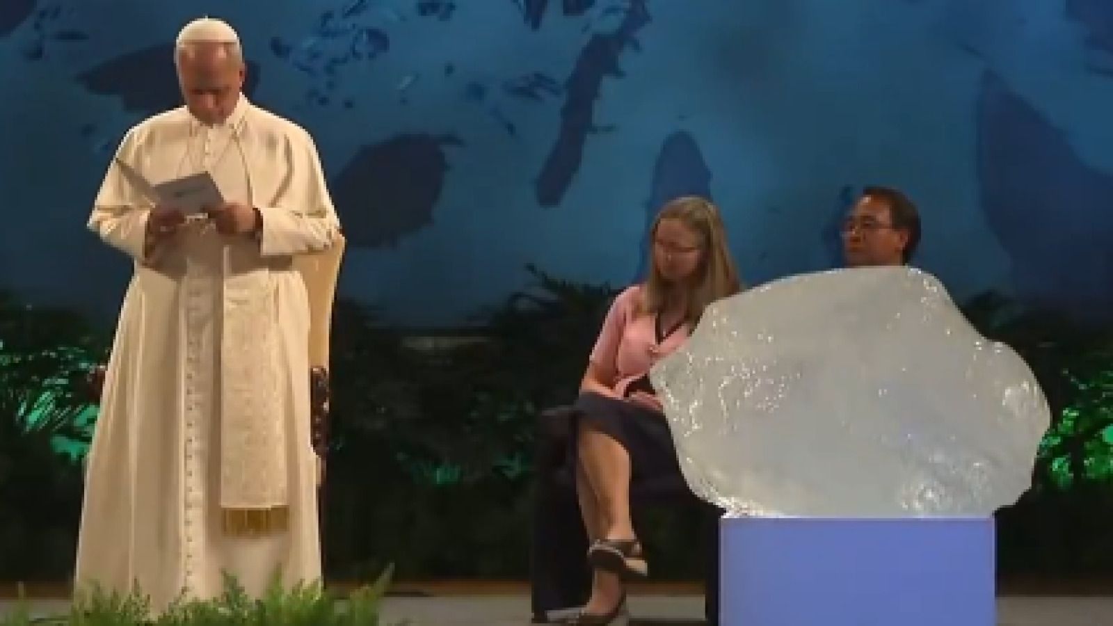.@Pontifex blesses a block of ice at Vatican CLIMATE CHANGE event. pic.twitter.com/gk9J2OVmVf