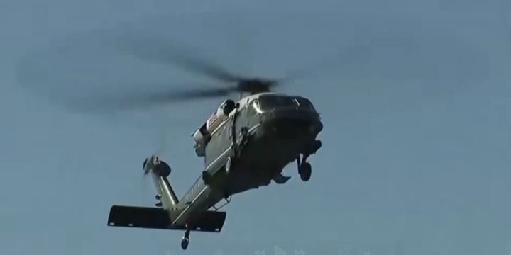 EPIC! President Trump Flies Into Navy’s 250th Birthday To TOP GUN Music!