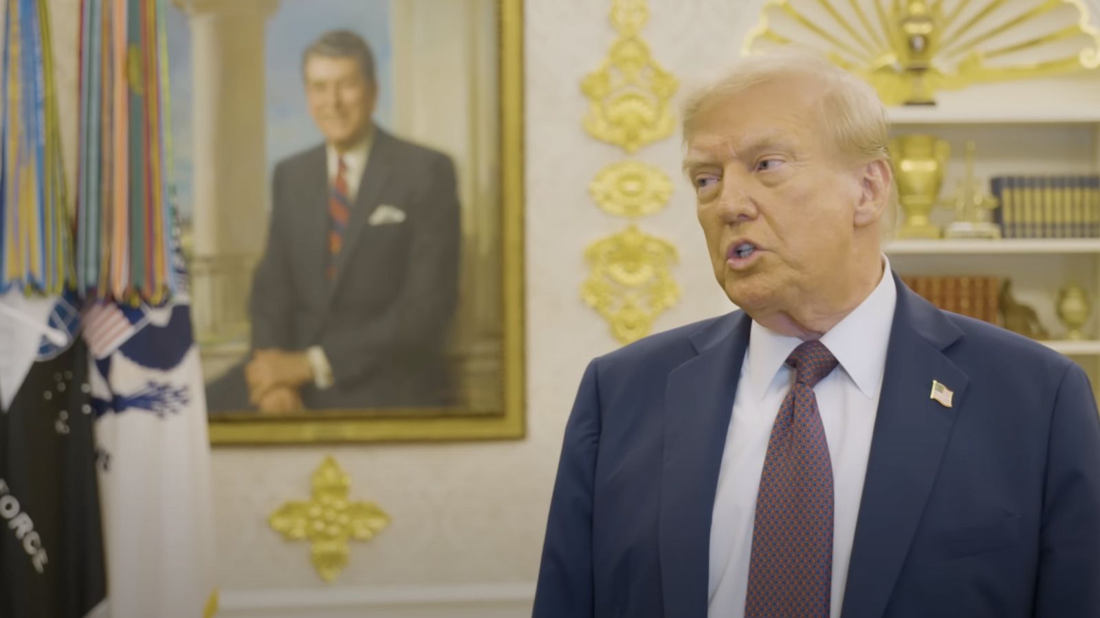 And we’ve seen bits and pieces of it during press briefings in the Oval Office and meetings with world leaders, but we’ve never actually seen a full video panning around the entire Oval Office with no interruptions and no one in the way.