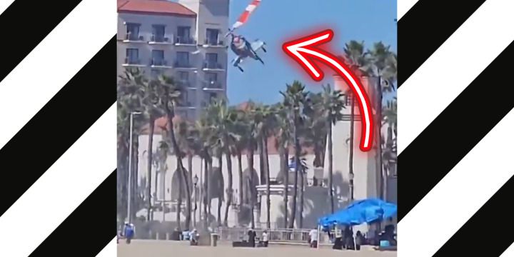 BREAKING: Man Recording Video Nearly Crushed When Helicopter Loses Control, Crashes Onto Huntington Beach!