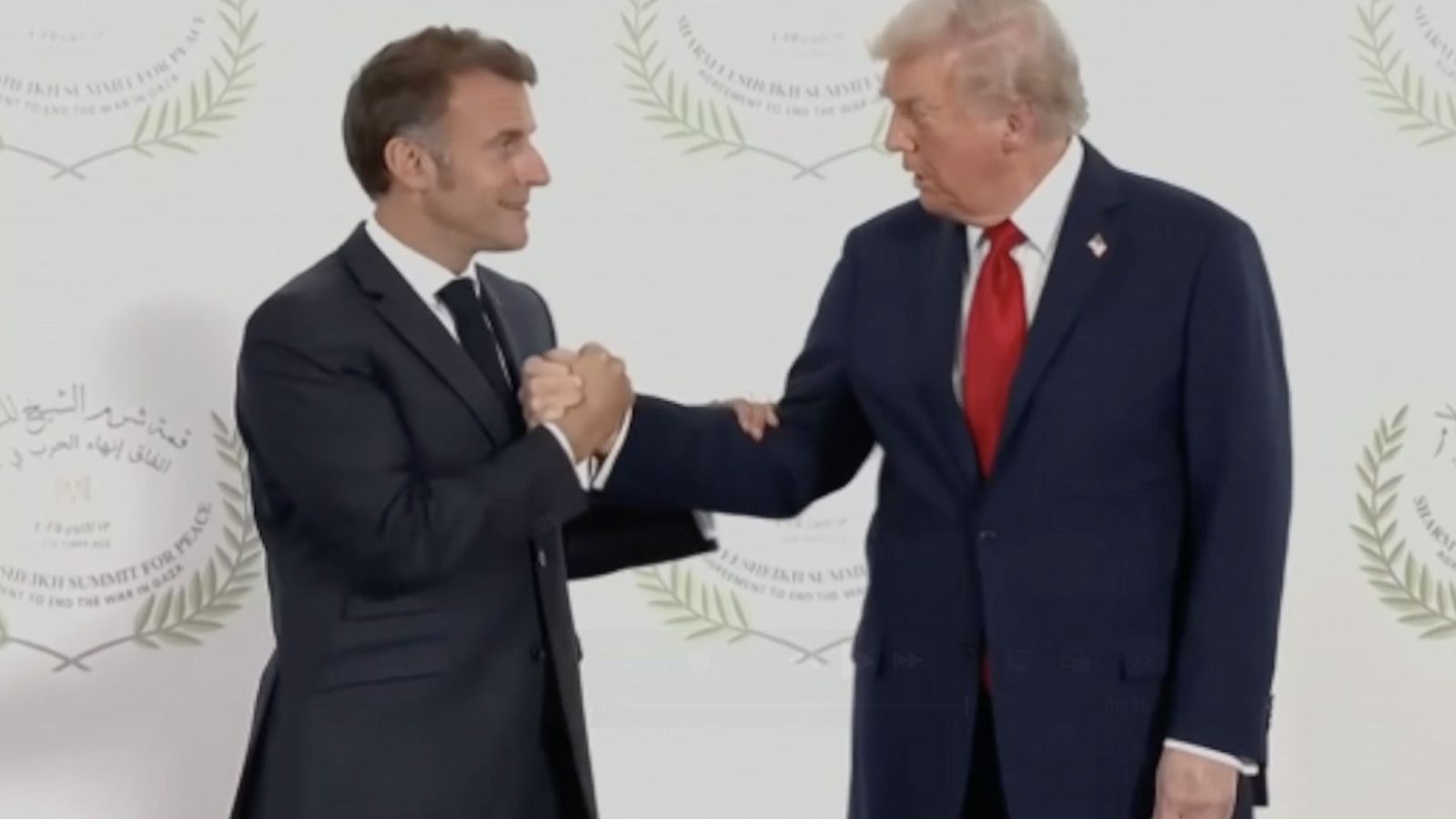 NOW – Trump and Macron "arm-wrestle" at Gaza Peace Summit. pic.twitter.com/fHqu9k1oYP