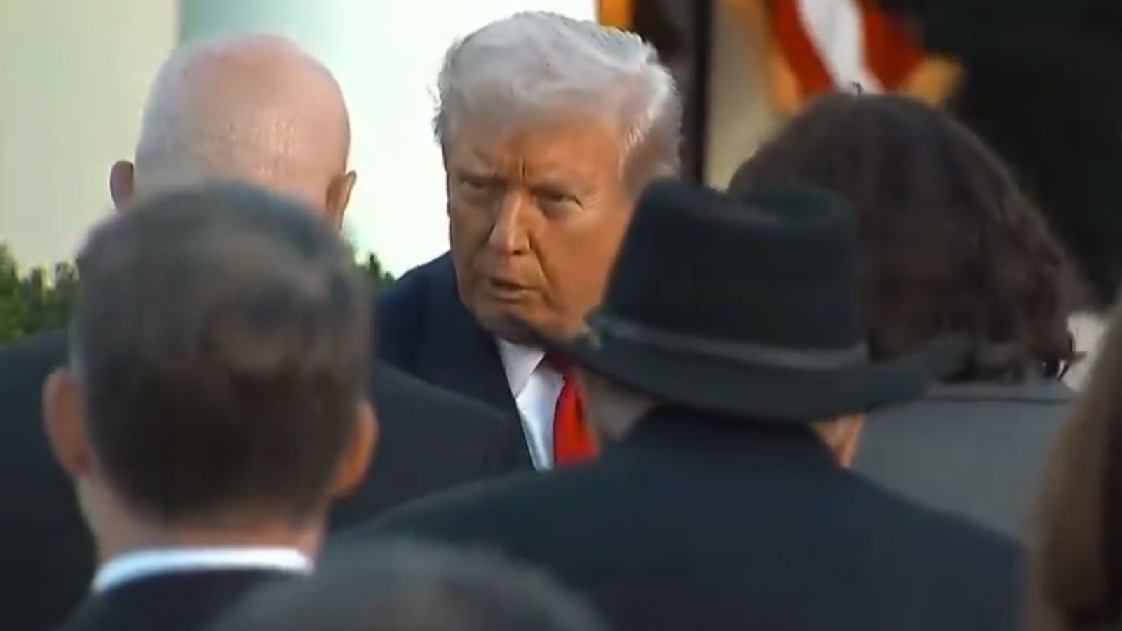 We don’t know what was said, but President Trump was seen conversing with Charlie Kirk’s father and mother for a few minutes before they were joined by Erika Kirk, who embraced her father-in-law.