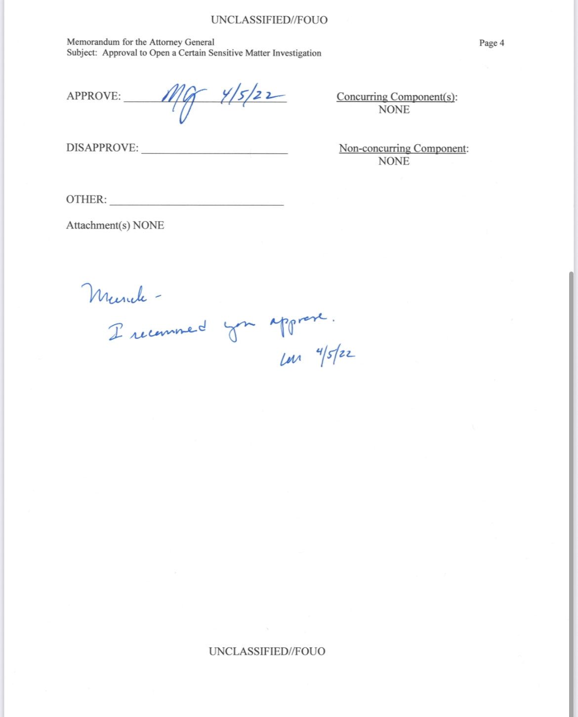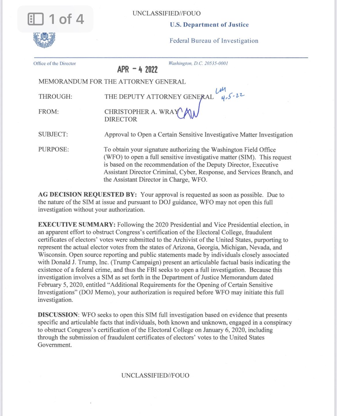 Just received this doc frm DOJ Proof that Biden Atty General Merrick Garland+ Deputy Atty General Lisa Monaco+ FBI Dir Chris Wray all PERSONALLY APPROVED opening Arctic Frost