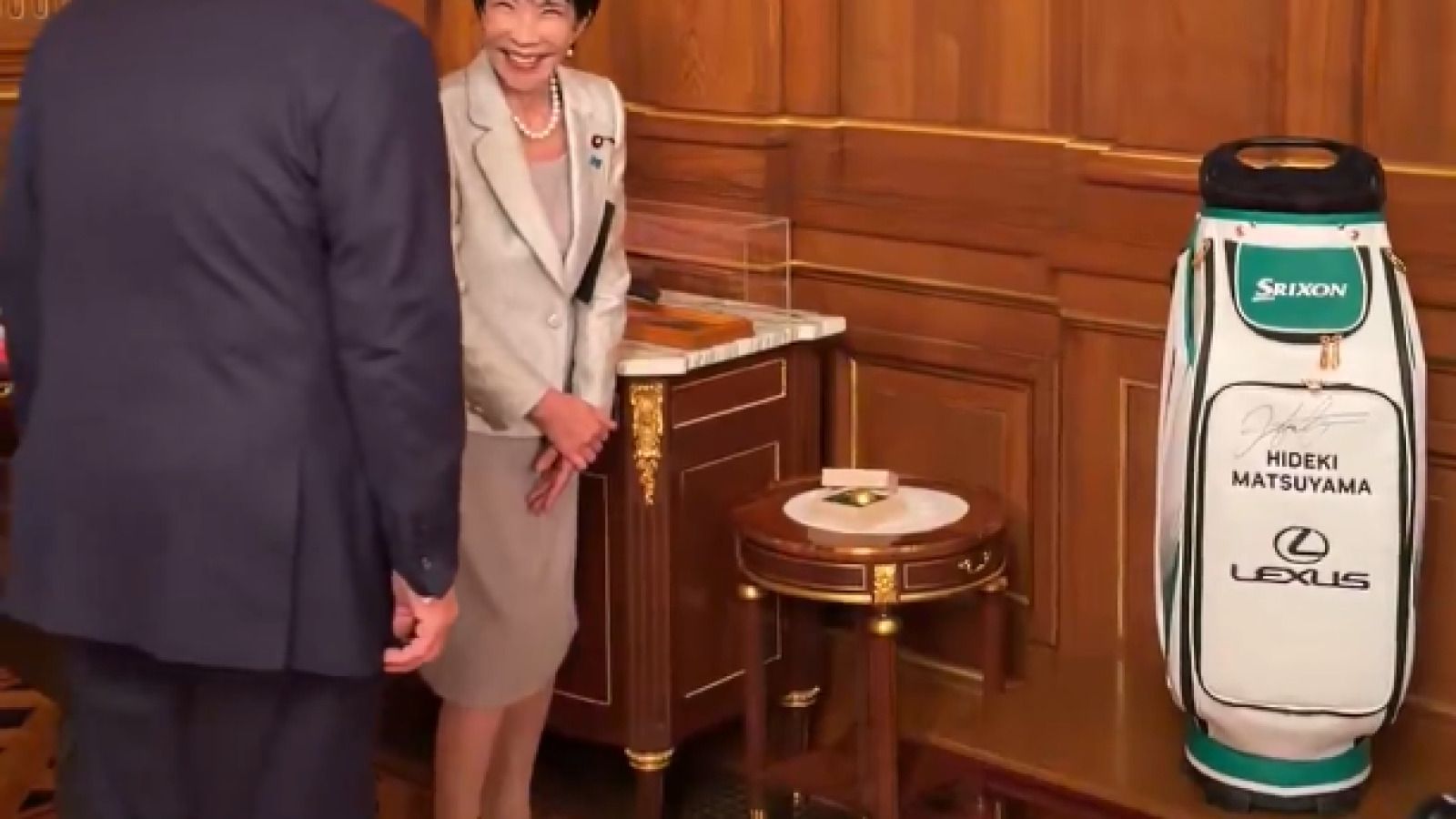 During the visit, Takaichi gave President Trump a very special and symbolic gift — the late Shinzo Abe’s putter and a golf bag signed by Masters champion Hideki Matsuyama.