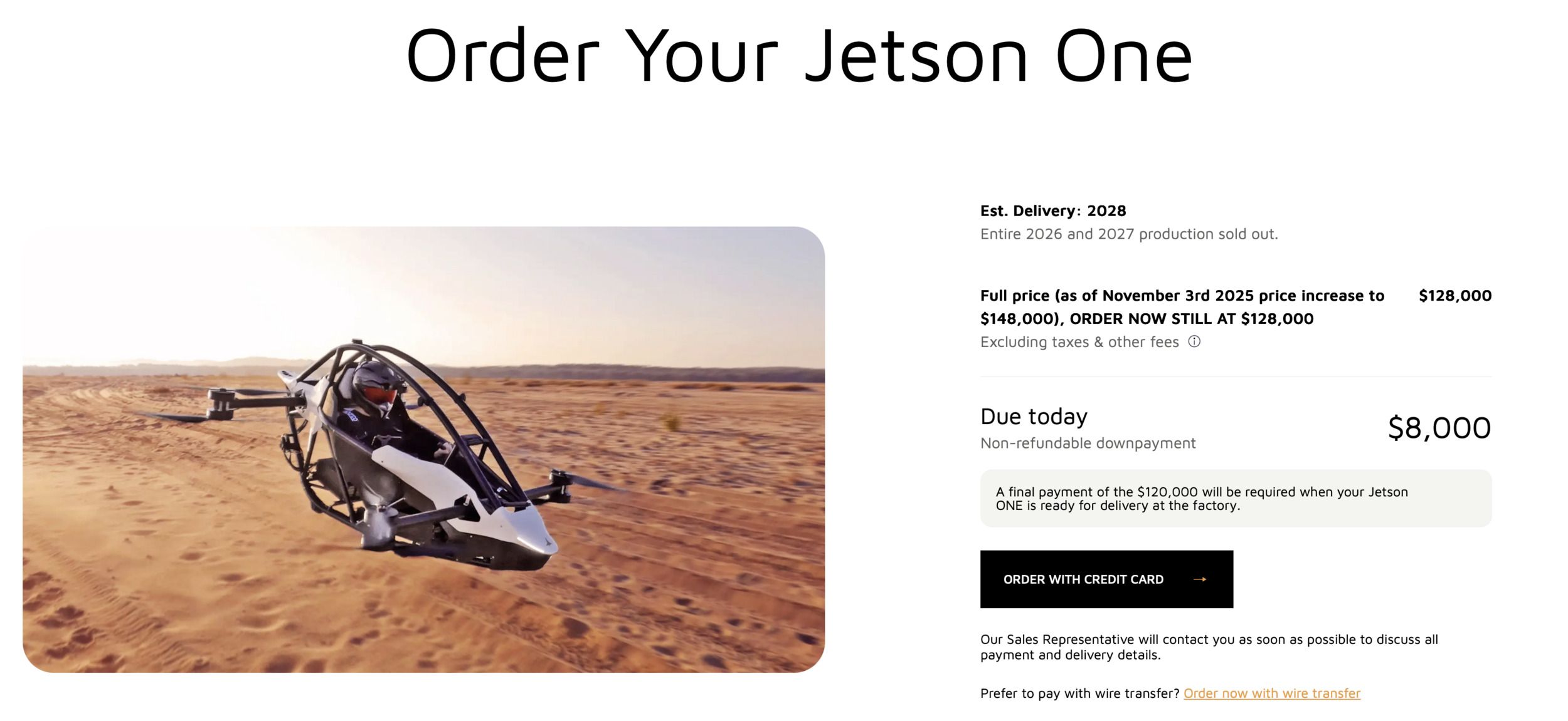 You can order one for $128,000, with $8,000 down due today.