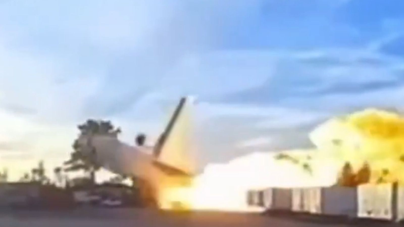Video of the incident shows the plane trying to takeoff, catching fire and bursting into flames.