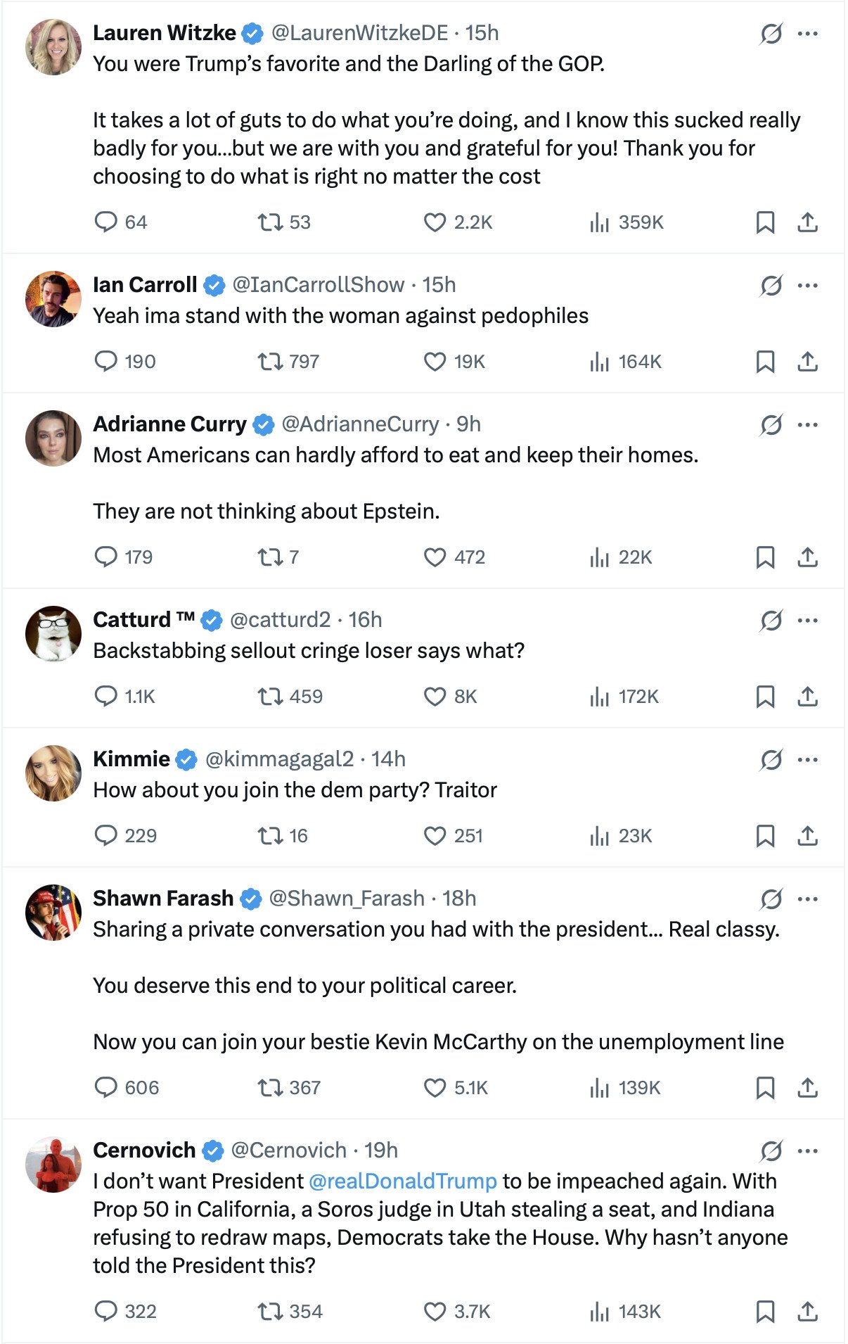 And of course he’s coming after me hard to make an example to scare all the other Republicans before next weeks vote to release the Epstein files.
