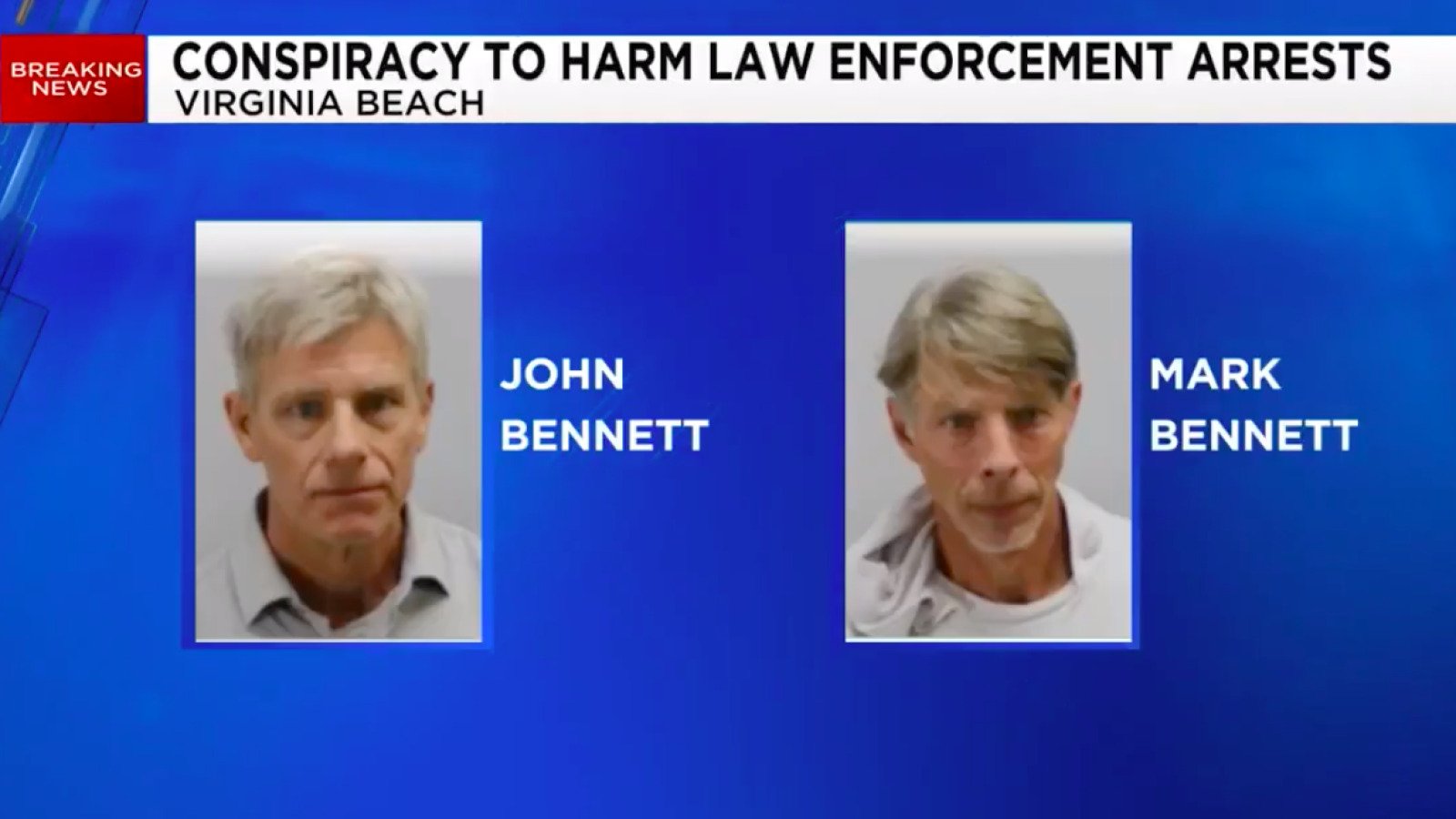 Mark Bennett, 59, and John Bennett, 54, were arrested at Norfolk International Airport on Wednesday around 9:40 a.m. and 10:50 a.m., respectively, with the help of airport police.